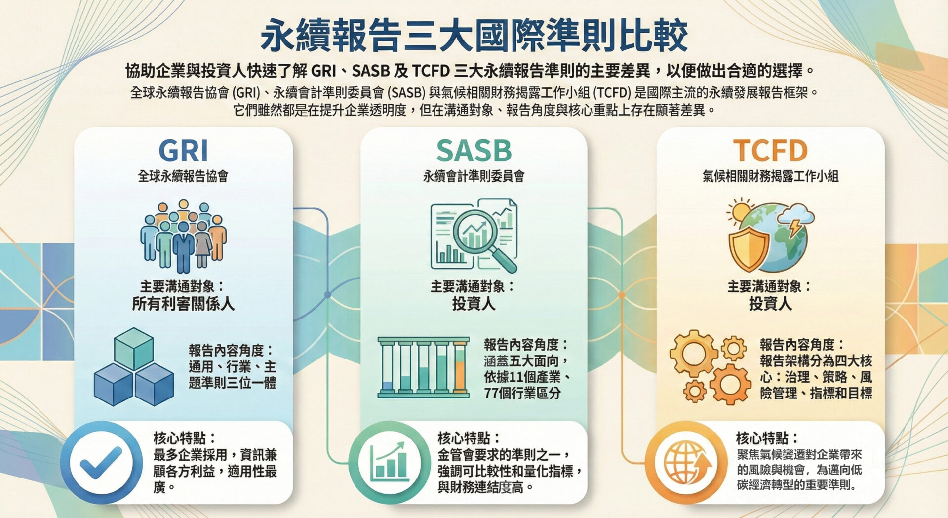 永續報告書怎麼寫?3大國際準則GRI、SASB、TCFD比較